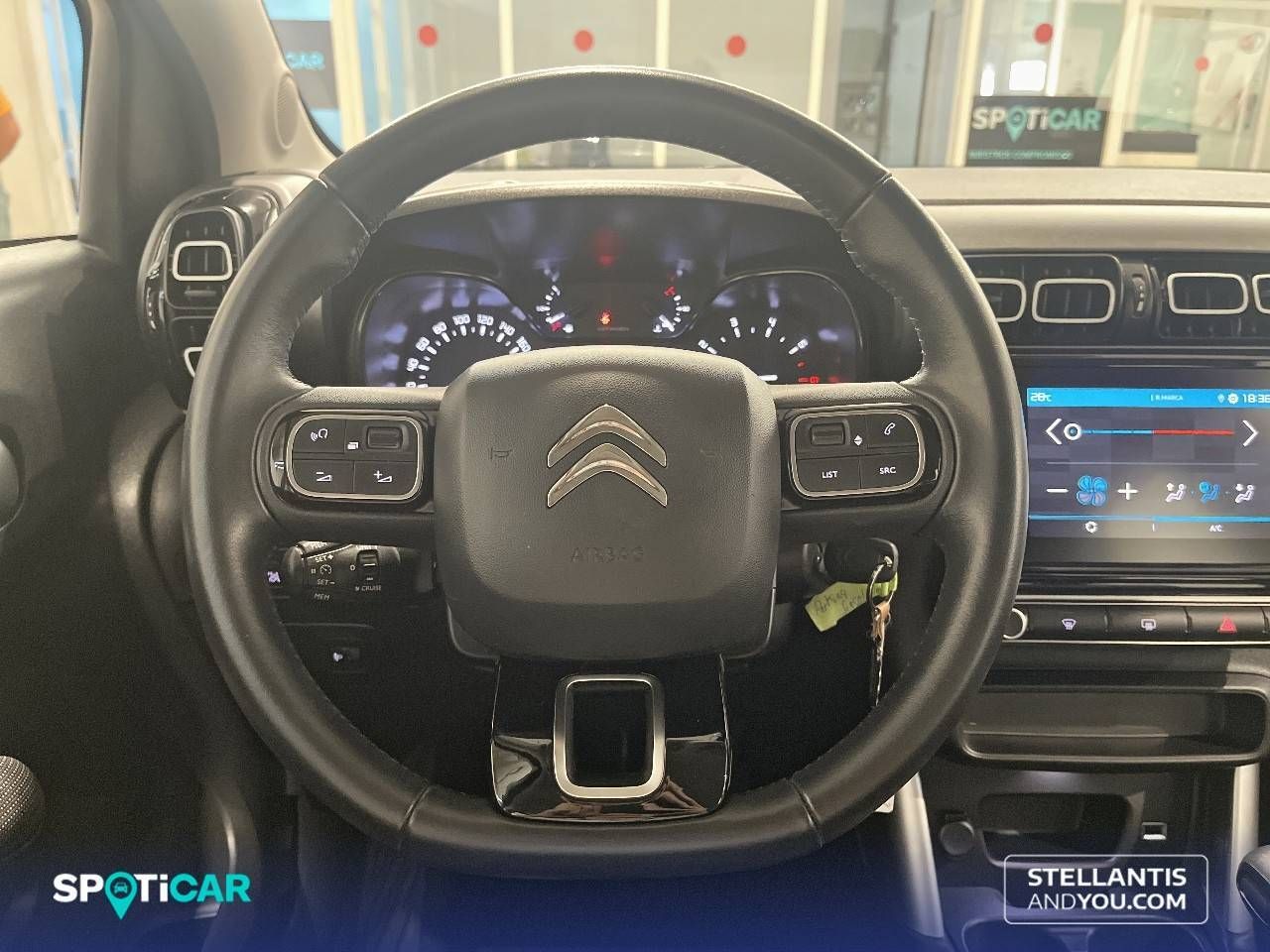 PVP financiado válido para clientes particulares que financien un capital mínimo de 10.000 € (o el 100% si el precio es inferior) a un plazo igual o superior a 60 meses mediante Stellantis Financial Services Spain, EFC SA. Sujeto a aprobación financiera. LE OFRECEMOS: • Entregas personalizadas • Prueba dinámica • Financiación a su medida • Solicite información de entrega a domicilio • Aceptamos su vehículo como parte de pago • Presupuesto de seguro sin compromiso • Posibilidad de gestión 100% online • Atención personalizada por videollamada EQUIPAMIENTOS: Alerón en el techo/parte superior del portón CITROËN Connect Nav: Sistema de navegación 3D sobre pantalla Táctil 9'' Faros con lente de superficie compleja, bombilla LED y luz larga con bombilla LED Luces frontales antiniebla, luces de cruce, Luces de día y luces de carretera con tecnología LED Pintura metalizada/opaca Portaequipajes longitudinal en el techo en negro/gris (no pintado) Sensores de aparcamiento traseros con radar Volante multi-función revestido de cuero ajustable en altura y en profundidad